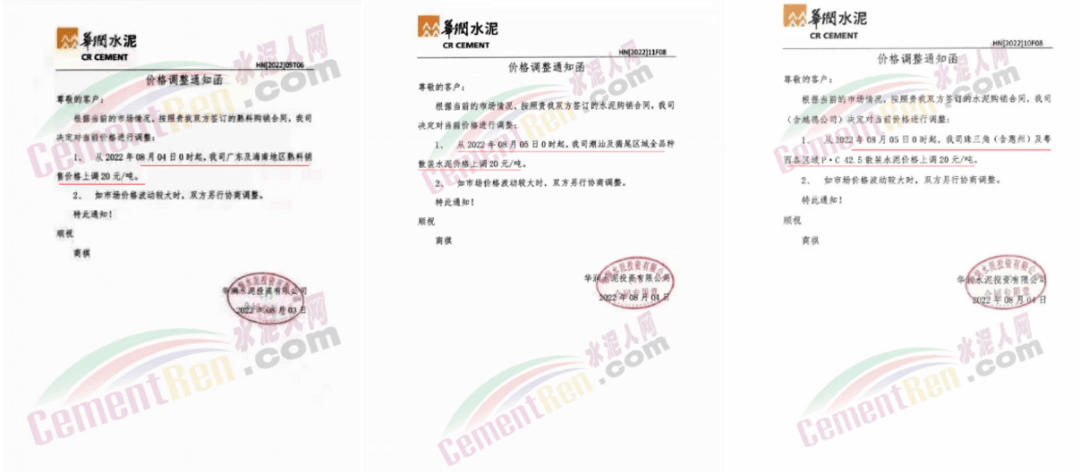 广东华润销往广东及海南地区熟料价格上调20元/吨,销往潮汕及揭尾区域全品种散装水泥上调20元/吨,销往珠三角(含惠州)及粤西区域P.C42.5散装水泥价格上调20元/吨;华润福建公司水泥价格上调20元/吨。