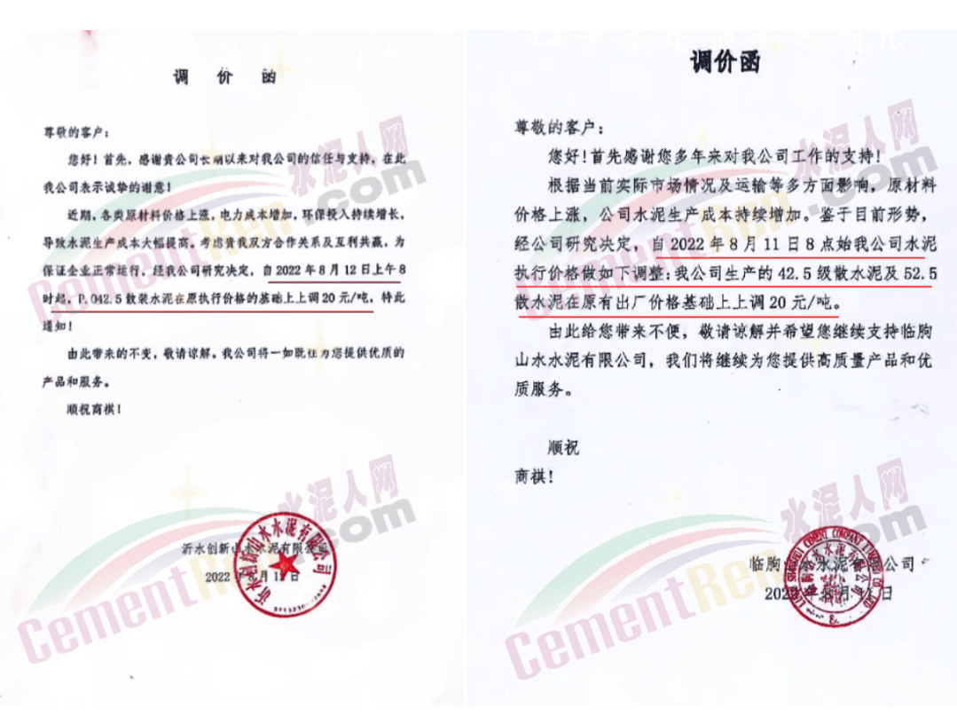 山水水泥旗下,沂水创新、青岛山水、临朐山水等水泥价格上调20-30元/吨。
