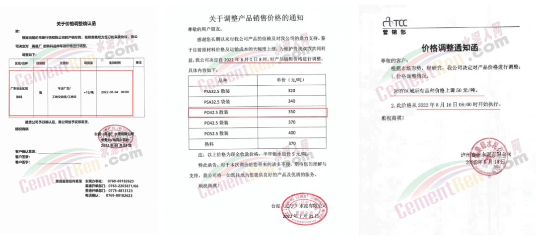 台泥英德水泥厂,熟料报价上调15元/吨;四川叙永台泥上调50元/吨;辽宁台泥P.O42.5水泥报350元/吨,依据不同销售区域报价分别上调80-100元/吨。