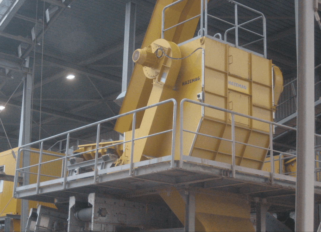 哈兹马克HPI系列初级反击式破碎机是建筑垃圾处理行业中性能最卓越的设备,它配置了自动化的排料控制系统,不会因为铁器进入破碎机而造成停机或者故障;高速运转的转子能够对原料实施的高频次打击,有效分离出原料中的铁器。同时,破碎机底部配置振动给料机,可以消除过长的钢筋及其他铁器排出时对皮带机的冲击。而且,破碎机的控制系统是全自动化的,出料粒度的大小、板锤磨损的补偿都是自动控制的,出料粒度调节方便,无需大量的人工维护。