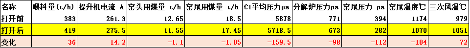 应用于水泥熟料烧成系统的“精准平衡操作技术”是我们国家在世界水泥行业的一项原创技术。自从问世以来,很多工厂都在尝试把三次风阀门全开运行,但是由于系统的工艺结构不同以及大家学习理解和掌握的的深度不同。各种生产线提升效果也不同。继浙江、重庆、山东、河南、广东多个水泥工厂把三次风管打开运行取得了明显的提产﹑降耗﹑降阻效果之后,四川的一家工厂在打开运行后,也产生了非常明显的效果。更因为煤价的持续增长,使其一项技术措施就产生了4000多万元的效益。下面是该企业打开三次风管阀门前后系统运行的两个页面实况。