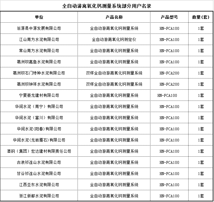 到目前为止,此仪器已在广东韶关、宁夏中宁等多个水泥厂的游离氧化钙测量工作中得到应用,克服了以往人工作业的各种缺点,具有实用性和经济性等优点。下表2为部分水泥厂使用此仪器测量的数据表: