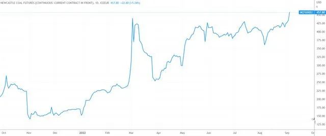 根据油价信息服务公司(OPIS)编制的每两周一次的指数显示,上周五澳大利亚纽卡斯尔港现货煤炭价格为每吨436.71美元,创下历史新高,这几乎是去年同期水平的三倍。