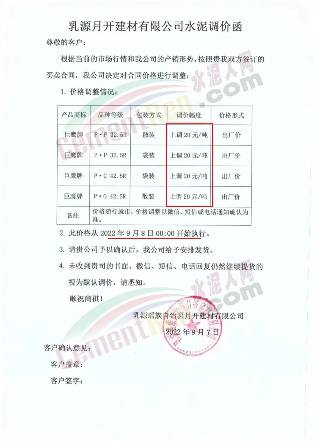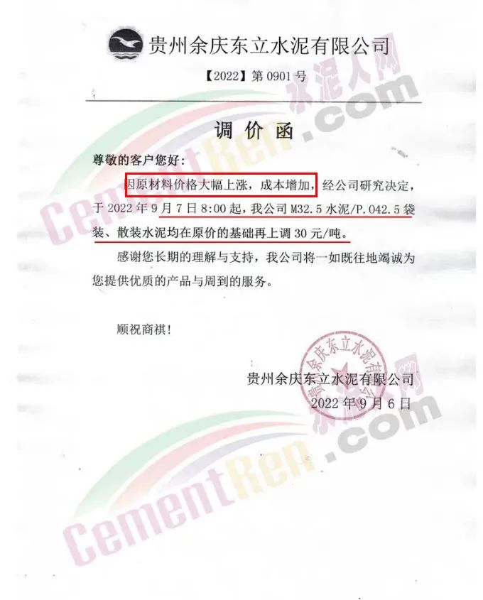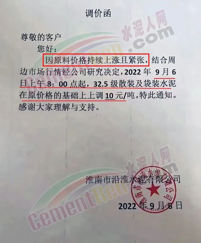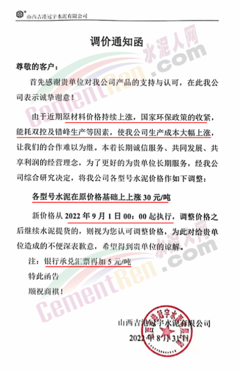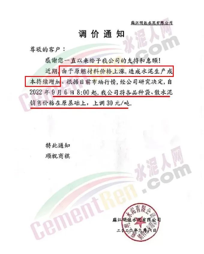 由于煤炭价格的不断攀升,让下游的水泥企业成本急剧上升,水泥企业也纷纷亮起涨价大旗,开始了涨价模式。企业涨价通知多称因原燃材料价格上涨,成本增加。