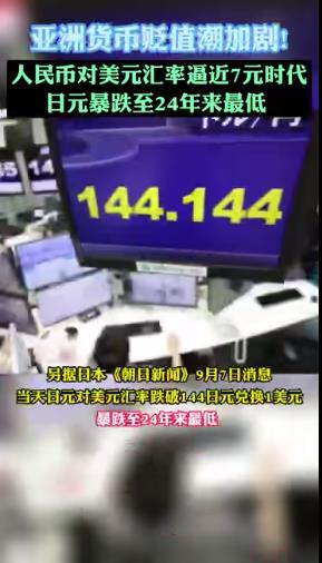 视频:9月7日,1美元兑人民币6.9160元,较上一交易日下调64个基点。人民币对美元汇率逼近7元时代。