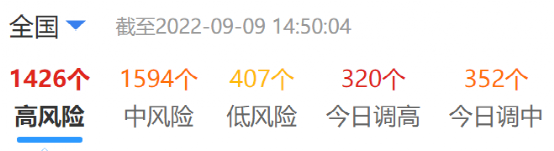 据公开消息,截止9月9日14时50分,全国高风险地区1426个。当日调高320个。中风险1594个,当日调中352个。高风险区域分别分布于黑龙江、四川、新疆、吉林、贵州、青海、内蒙古、广西、江西、西藏、广东、海南、山东、辽宁、天津、湖北、河南、北京、陕西、甘肃、安徽、上海、江苏等23个省市自治区区域内。
