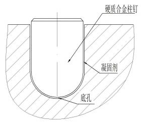 辊体运行时柱钉会受到非轴向力传导至粘胶及辊体,过盈量的设置、辊套母体的强度高低会在实际运行中检验出是否会出现在非轴向力的作用下将辊体孔壁冲击变形,导致柱钉与孔间隙增大,从而使柱钉脱落。再者各系统物料温度不同,如物料在出现高温段时镶嵌的柱钉与钻孔间粘胶溶胶而引起柱钉脱落,如不及时补钉维护,很容易造成柱钉脱落处的母体磨损从而出现相关的问题。