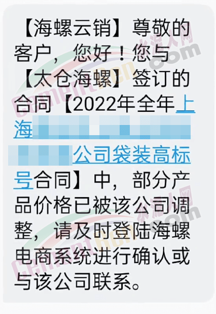 日前,有长三角区域经销商收到海螺云销发布的提示消息称太仓海螺水泥价格已调整。