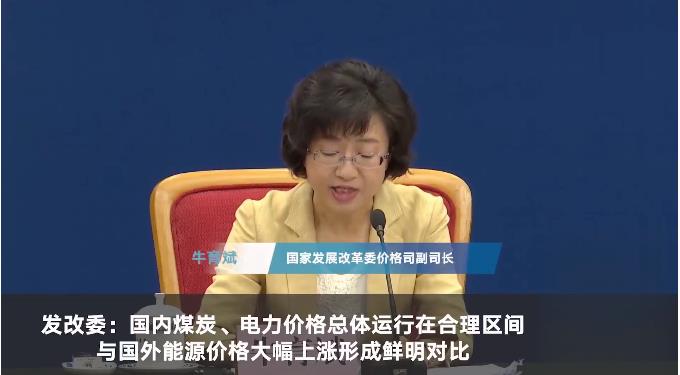 国家发改委9月29日举行新闻发布会,介绍深化改革开放有关工作情况。会上,国家发改委价格司副司长牛育斌表示,煤价、电价改革文件实施以来,国内煤炭、电力价格总体运行在合理区间,这与国外能源价格大幅上涨情况,形成鲜明对比。