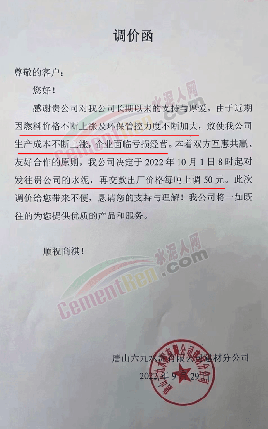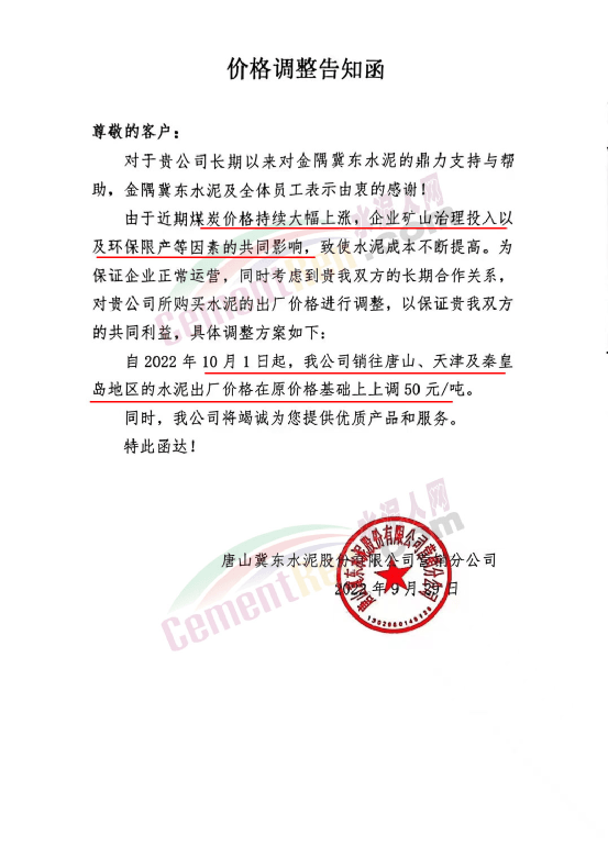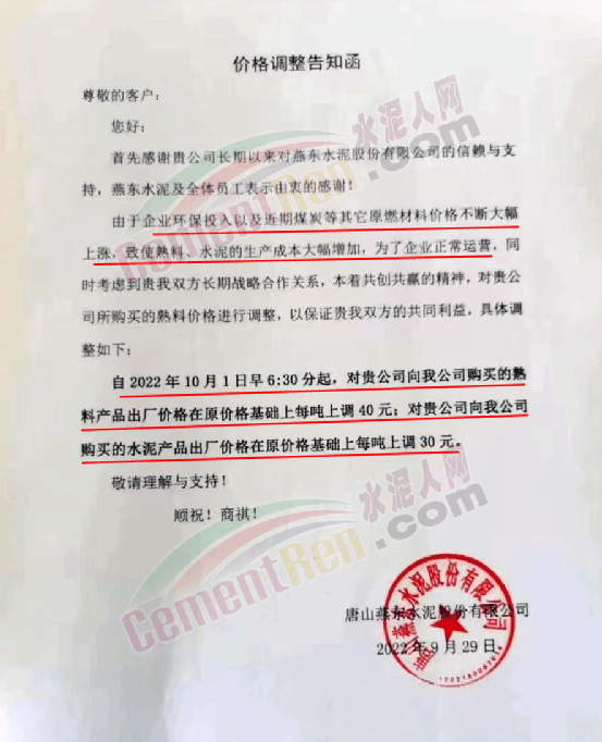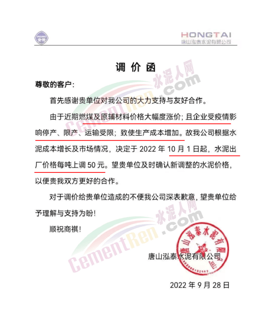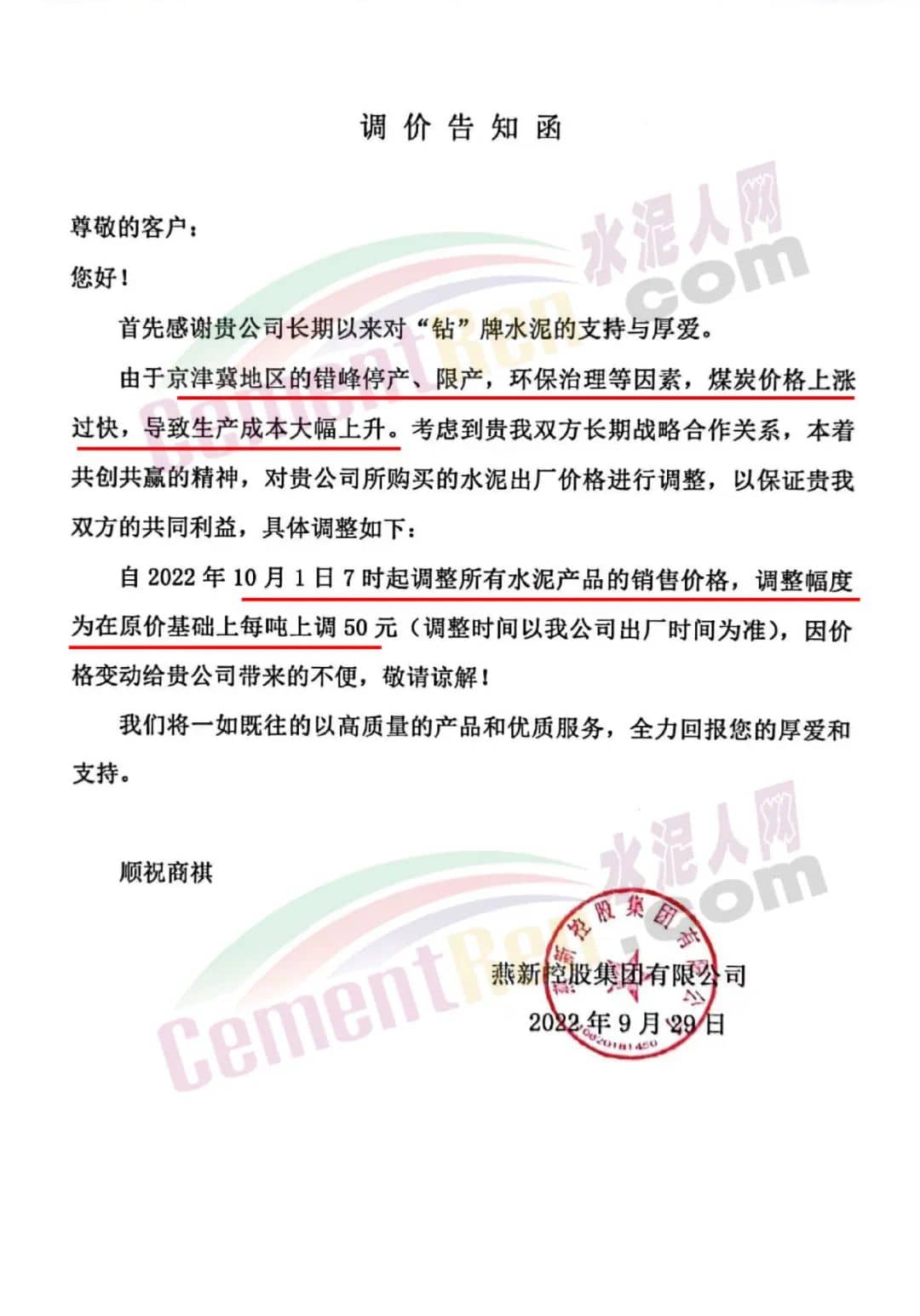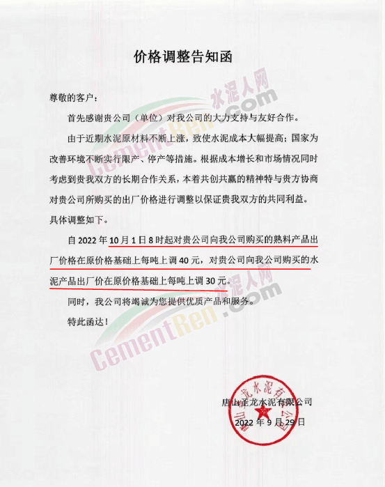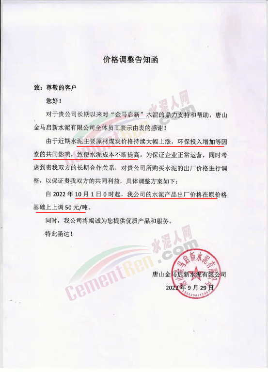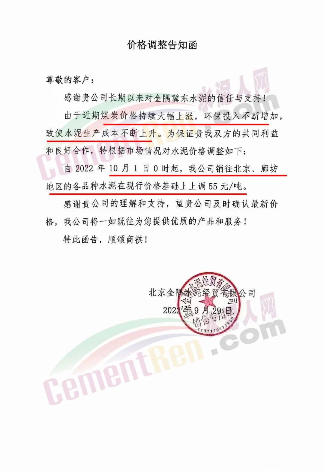 水泥企业提前发出的价格调整告知函,也预示了10月水泥行情继续回暖的趋势。