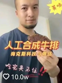 坐拥近800万粉丝的辛吉飞发布的视频中,合成食物制作视频让人大开眼界,你吃的牛不是牛,羊不是羊,鸡不是鸡,肉不是肉,我们吃的其实都是化工品。