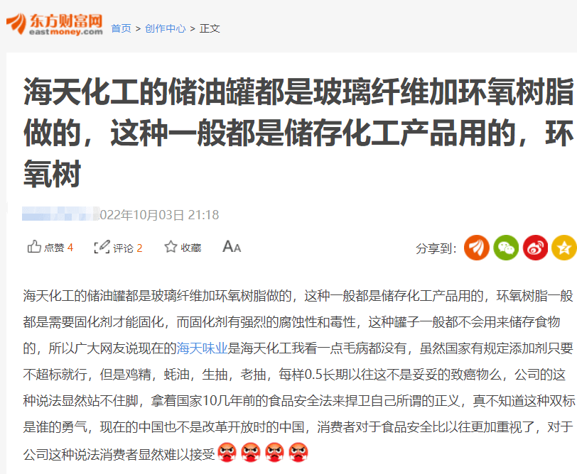 据了解,网传某知名食品厂用的储油罐是玻璃纤维加环氧树脂做的,这种一般都是储存化工产品用的,环氧树脂一般都是需要固化剂才能固化,而固化剂有强烈的腐蚀性和毒性,这种罐子一般都不会用来储存食物的。