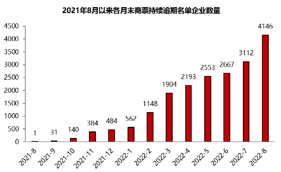 据上海票交所公开数据, 2022年3月1日至2022年8月31日出现3次以上付款逾期,且截至2022年8月31日有逾期余额或2022年8月当月出现付款逾期的承兑人数量为4146家,较上月末增加1034家,创历史新高。其中房地产相关企业依然是商票逾期的重灾区,4146家逾期企业中,房地产、建筑、租赁和商务服务企业达到3265家,占比79%;首次逾期的1247家企业中,房地产、建筑企业、租赁和商务服务企业达到997家,占比80%。广州富力地产股份有限公司首次出现在逾期名单之上,8月末逾期余额3575万元,房地产企业风险仍在持续暴露。