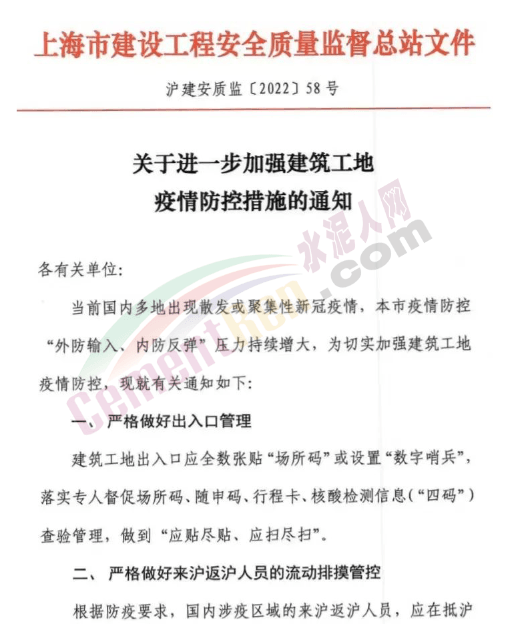 10月9日上海市建工总站发布通知要求进一步加强建筑工地疫情防控措施。