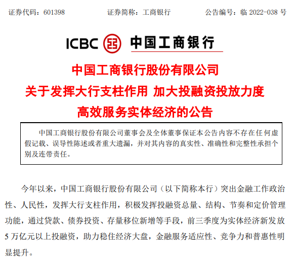 16日晚间,工、农、中、建、交五大国有银行均发布公告,表示加强对实体经济的支持力度。