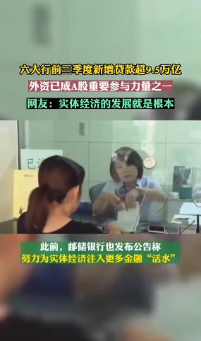 相关数据显示,工、农、中、建、交、邮储六大行前三季度新增贷款超9.5万亿。