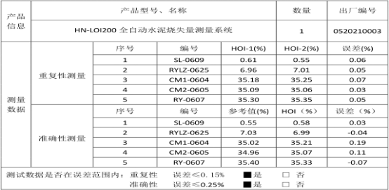 重复性对比:用此仪器测量水泥生产中的熟料、生料、成品水泥,按照GB/T176-2017《水泥化学分析方法》中灼烧差减法,通过重复添加相同的试验进行测量,观察相同样品的重复性。