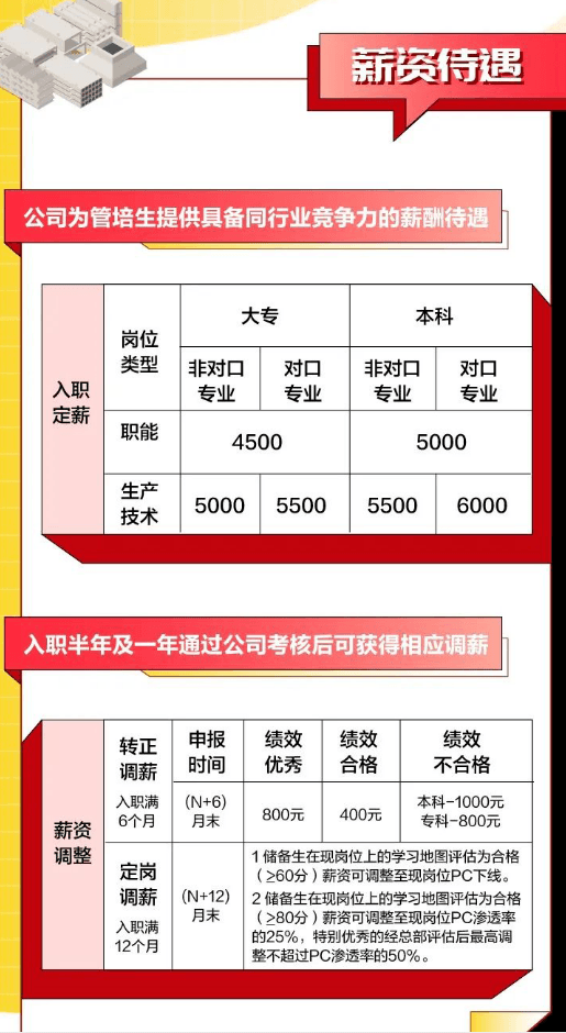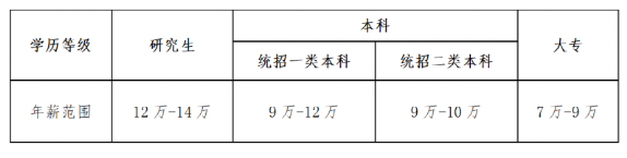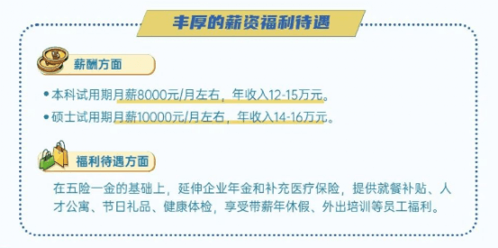 月薪:硕士研究生8000元/月(985/211院校9000元/月),第一批次本科6500元/月(985/211院校7000元/月),第二批次本科6000元/月,大专5500元/月;