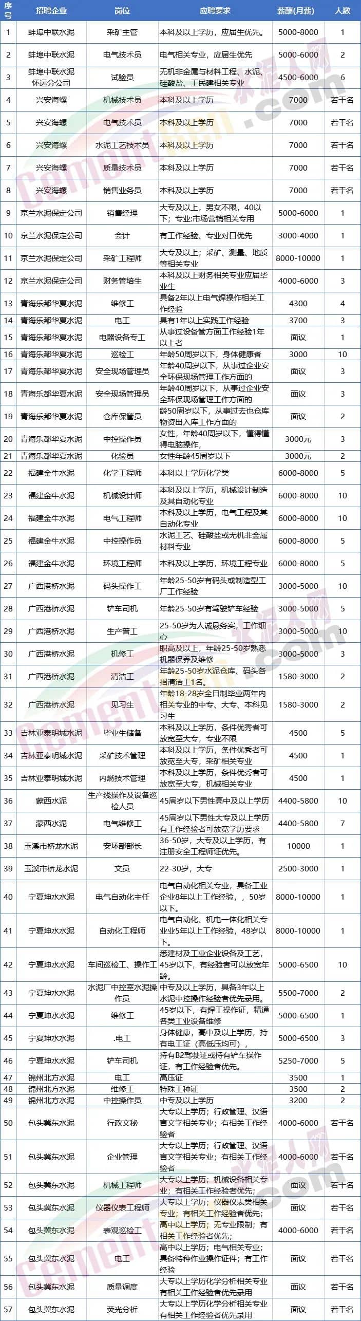 中联、北方、海螺、冀东、亚泰等社招“抢人”