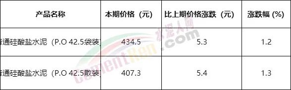 2022年10月下旬流通领域重要生产资料市场价格变动情况显示,普通硅酸盐水泥(P.O 42.5袋装)报价434.5元/吨,上涨5.3元/吨;普通硅酸盐水泥(P.O 42.5散装)407.3元/吨,上涨5.4元/吨,涨幅1.2%~1.3%,水泥价格已突破400元/吨大关。