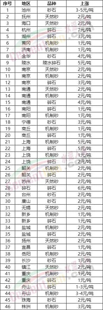 珠三角区域砂石价格累计上涨40-50元/吨,疫情影响出货量小幅下滑