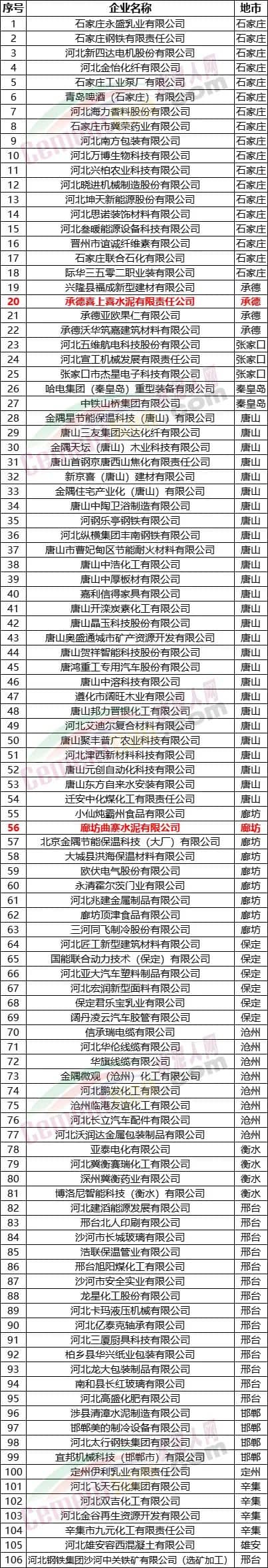 2022年河北省绿色工厂名单