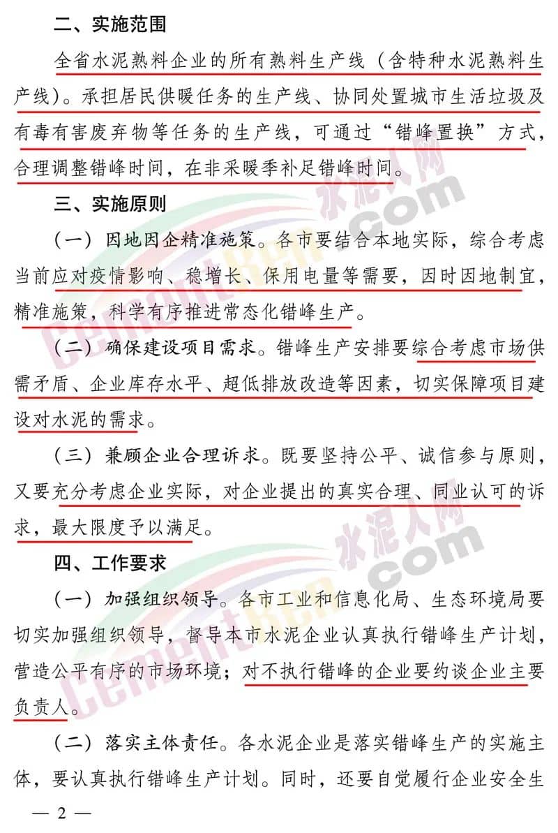 《通知》要求错峰生产安排要综合考虑市场供需矛盾、企业库存水平、超低排放改造等因素,切实保障项目建设对水泥的需求。同时兼顾企业合理诉求。既要坚持公平、诚信参与原则,又要充分考虑企业实际,对企业提出的真实合理、同业认可的诉求,最大限度予以满足。对不执行错峰的企业要约谈企业主要负责人。同时,还要自觉履行企业安全生产和环保主体责任,严格疫情防控,将设备检修、环保技术改造、职工培训等与错峰生产结合安排,确保水泥常态化错峰生产平稳有序、顺利进行。