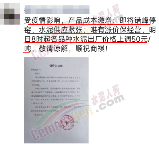 经销商则表示,受疫情影响,产品成本激增。水泥供应紧张,唯有涨价保经营。