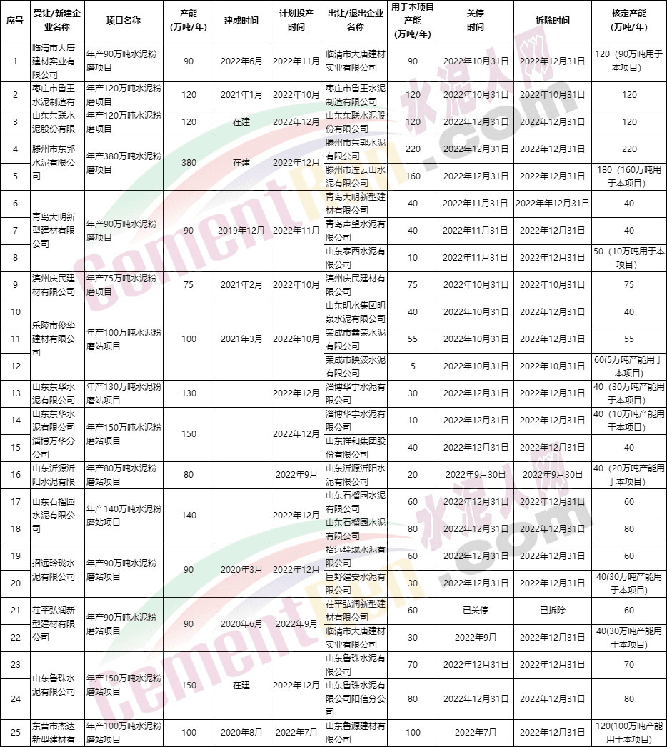据水泥人网了解,类似的“先上车后补票”式补齐产能,近年来并不少见。而且不仅见于熟料生产线。山东省7月份以来发布的粉磨站补充产能公告包含15个水泥粉磨项目。置换比例均为1:1,核定产能合计1905万吨/年。退出项目共25个,合计退出1645万吨/年。