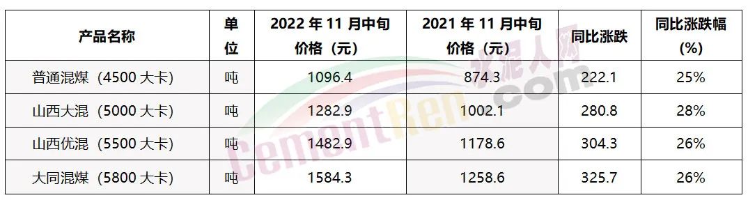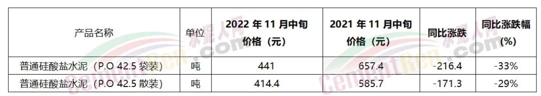 同比2021年11月中旬煤价仍处于高位水泥价格却处于相对低价。