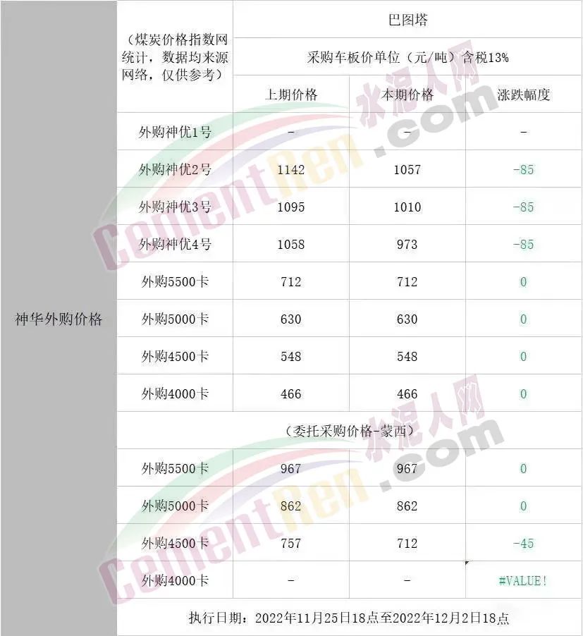 11月25日榆林矿区延续弱势下行行情,区域内煤矿还在继续大幅下调价格。疫情影响运输,叠加港口、坑口、大型煤企价格持续下行,终端普遍放缓采购,榆林市场销售冷清,煤矿库存回升,价格承压大幅下行。