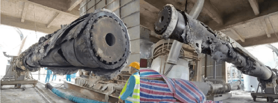 窑筒体过热时采取喷水降温的方式是各企业严格禁止的,如果已经出现局部温度过高或烧红,无法在窑运转的情况下降温的情况,需要紧急停窑,降温、换砖、挖补或更换部分窑筒体。相对较严重的情况下也可能出现筒体局部严重变形,无法砌筑耐火砖。更严重地,如出现裂纹,裂缝或者烧透了,出现“大洞”,无法通过上述方法修复的,就只能选择更换部分窑筒体了。