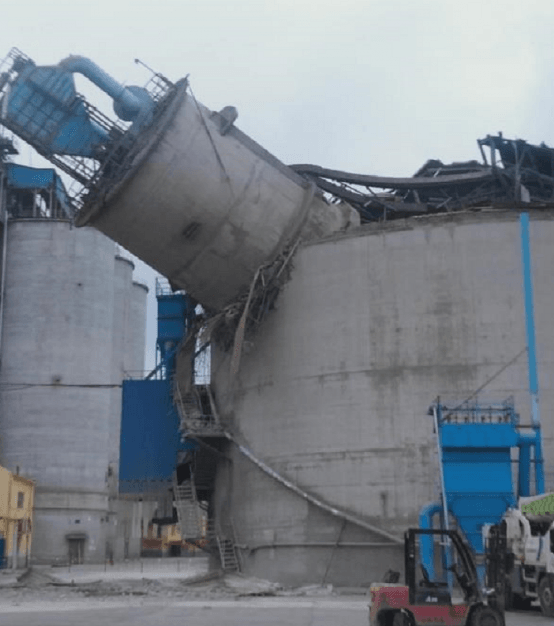 水泥企业中心筒仓倒塌事故并不常见,多是因为筒仓磨损较为严重,混凝土保护层磨掉之后,又把钢筋磨断,继而造成的坍塌。