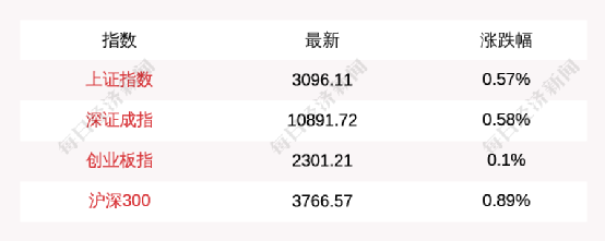 11月29日三大股指高开,上证指数涨0.57%,报3096.11点,深证成指涨0.58%,报10891.72点,创业板指涨0.10%,报2301.21点。房地产开发、房地产服务、租售同权等板块领涨两市。