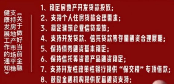 据了解,“三支箭”系列利好政策还包括:适时适度运用降准等货币政策工具,保持流动性合理充裕;人民银行、银保监会正式发布16条金融举措,全面支持楼市平稳健康发展。