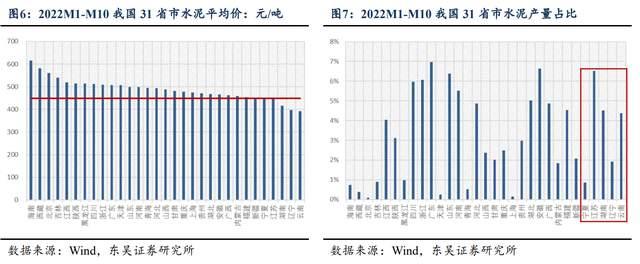 2022年1-10月,河南水泥平均价达497.98元/吨,低于河南水泥均价10%的区域主要为宁夏、江苏、湖南、辽宁、云南,其产量占全国产量比重为18.22%。