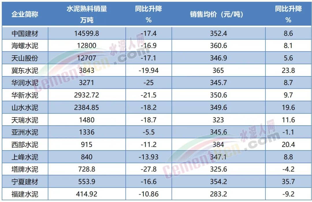 水泥上市公司成本、价格上涨,产销量下滑