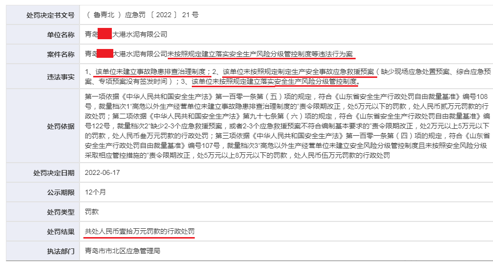 在以上案例中,该水泥企业正是由于未按规定建立落实安全风险分级管控和隐患排查治理双重预防工作机制的违法事实,而受到执法部门的严厉处罚。