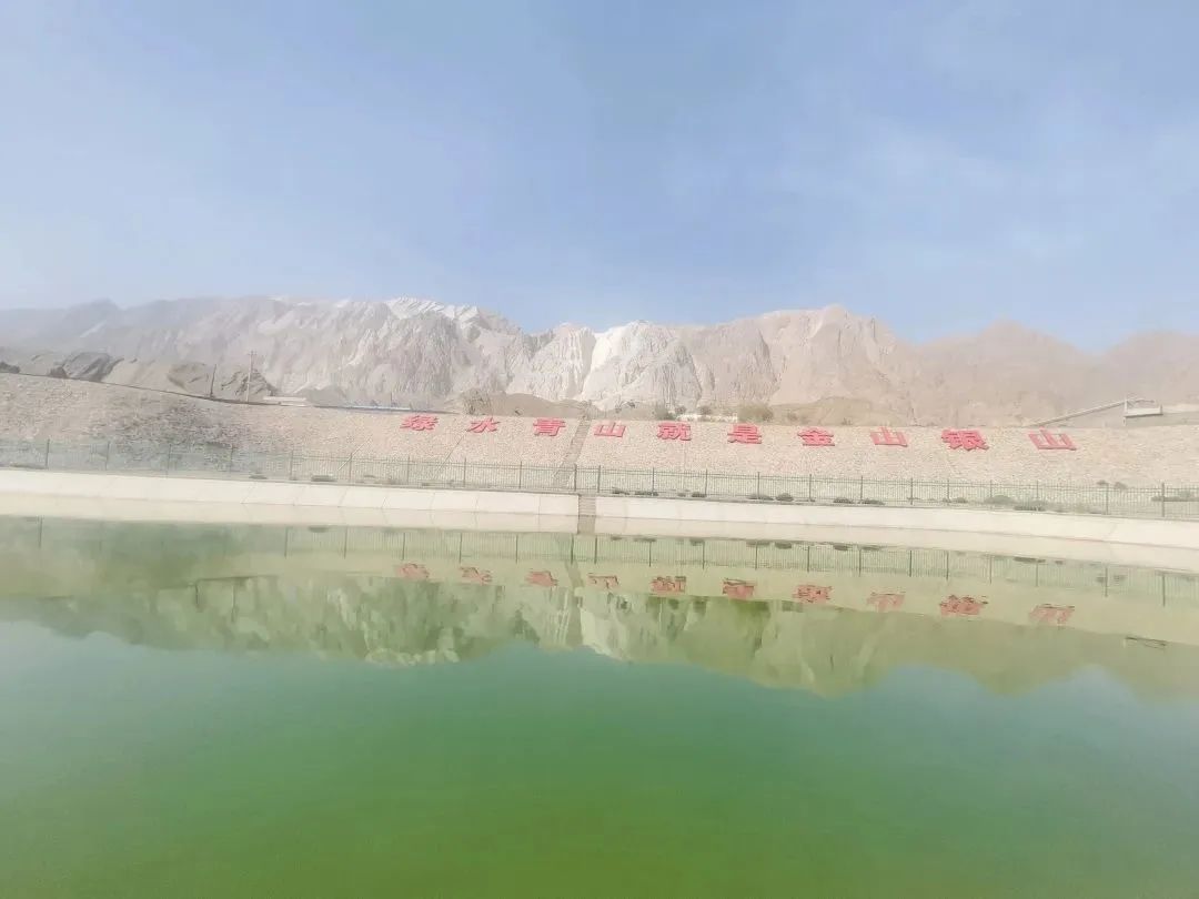 在黄沙烈日下推进矿山标准化建设,在戈壁大漠上种下绿色发展的花朵。他们凭着一股不服输的韧劲儿和能闯能干的拼劲儿,在新疆一呆就是12年,曾经新入职的小青年,如今也已变成了沧桑的漠北汉子;曾经简陋的围坝,如今也变成了干净整洁的生活区:衣柜、浴室、食堂、健身设备一应俱全。从阿克苏分公司矿山平台向生活区远眺,碧绿的水池是这片荒漠上的明珠,规划整齐的上山道路是蜿蜒的丝带。