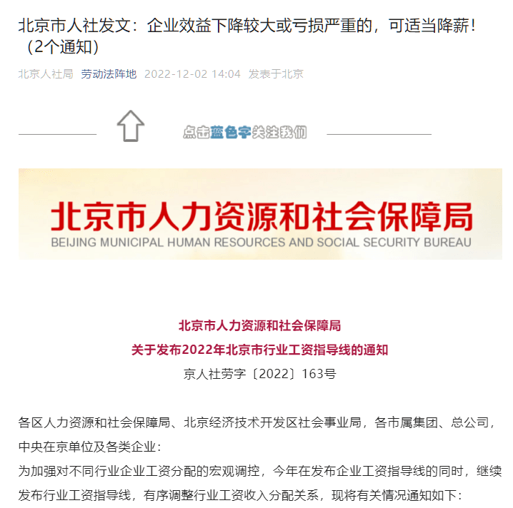 近日,北京市人社发文,企业效益下降较大或亏损严重的可适当降薪。