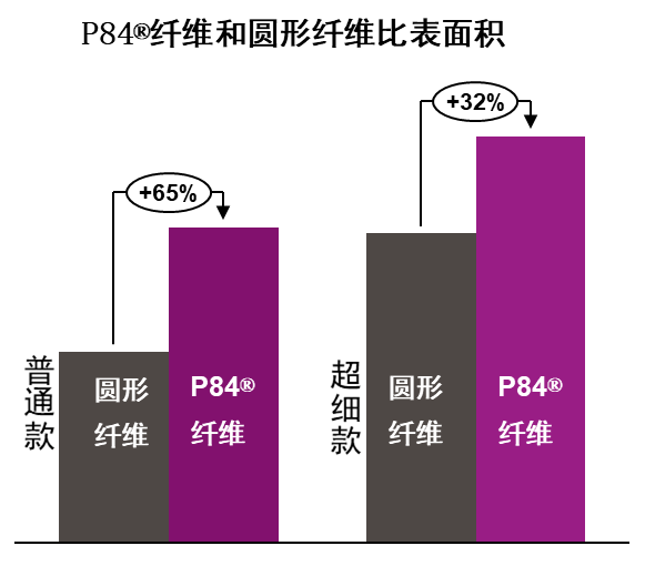 图2:P84®纤维具有更高的比表面积