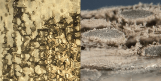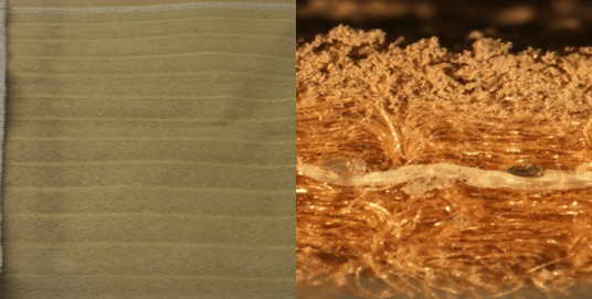 图3 :不规则的多叶形P84®纤维与圆形纤维捕捉粉尘效果比较