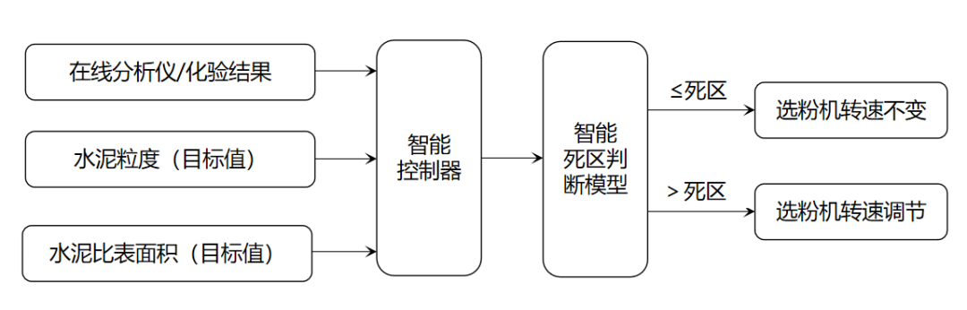 水泥成品粒度是水泥质量的核心指标,主要依托在线粒度仪实时测量(或化验室数据)的粒度数据,实现对选粉机转速设的实时控制。粒度控制主要以先进预测控制方法为基础,实现对选粉机进行自动控制,控制框图如下: