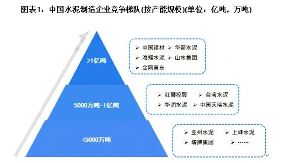 各大龙头企业按年产能划分,可分为3个竞争梯队。其中,年产能大于1亿吨的企业有中国建材 、海螺水泥、华新水泥、山水水泥、金隅冀东;年产能在5000万吨至1亿吨之间的企业有红狮、台泥、华润、天瑞等,其余企业的年产能多在5000万吨以下。其中中国建材、海螺水泥、金隅冀东三大龙头占据了水泥行业总产能的37.69%,产能排名前十的企业合计占比达57%。且绝大多数都有在利用并购重组等方式增强自身竞争力。