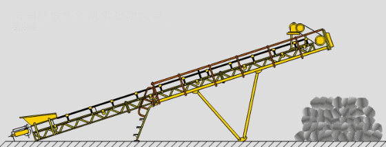 (4)托辊支架安装倾斜(基本不平及安装的质量造成),使输送机整机托辊支架不在同一水平面上,造成输送带上的物料不对中,从而引起输送带跑偏。