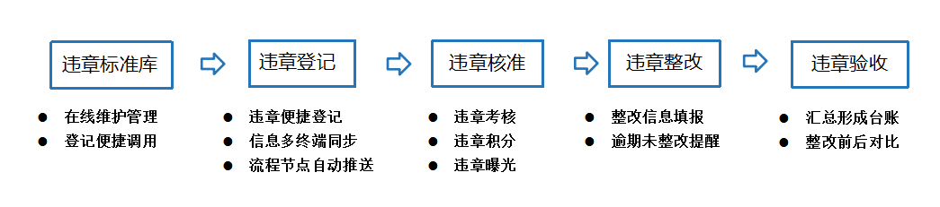 全员录入线上管理系统,隐患治理全流程(隐患登记-核准-整改-复查验收-关闭)均指定到相关责任人,安全检查及隐患治理等工作流程自动推送、工作事务智能提醒,真正实现安全管理人人参与、层层落实、闭环管控,且全过程留痕,记录可追溯。
