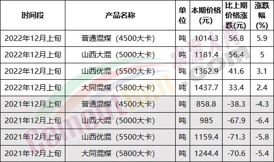 尽管煤价处于持续下跌中已有一个多月,但相比上年同期煤价仍处于高位。日前,国家统计局发布的2022年12月上旬流通领域重要生产资料市场价格变动情况显示,4500-5800大卡动力煤单价仍在千元以上,同比上年同期仍有155.5~203.5元/吨的差价。