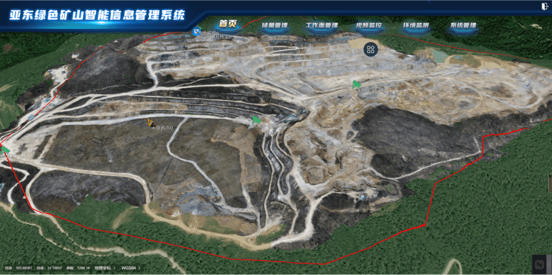 为了精准开采、绿色开采,亚东水泥建成了黄冈亚东、江西亚东及四川亚东矿山三维可视化系统模组,提供矿山可视化展示效果,全方位展示矿山采区生产信息、复垦绿化及环境监测(粉尘、噪音等)等内容。三维分析测量工具可减少生产中的测量作业工作,模型高程和水平量测精度优于10cm/像素点,可以达到 1:500 比例尺的精度,提高工作效率。