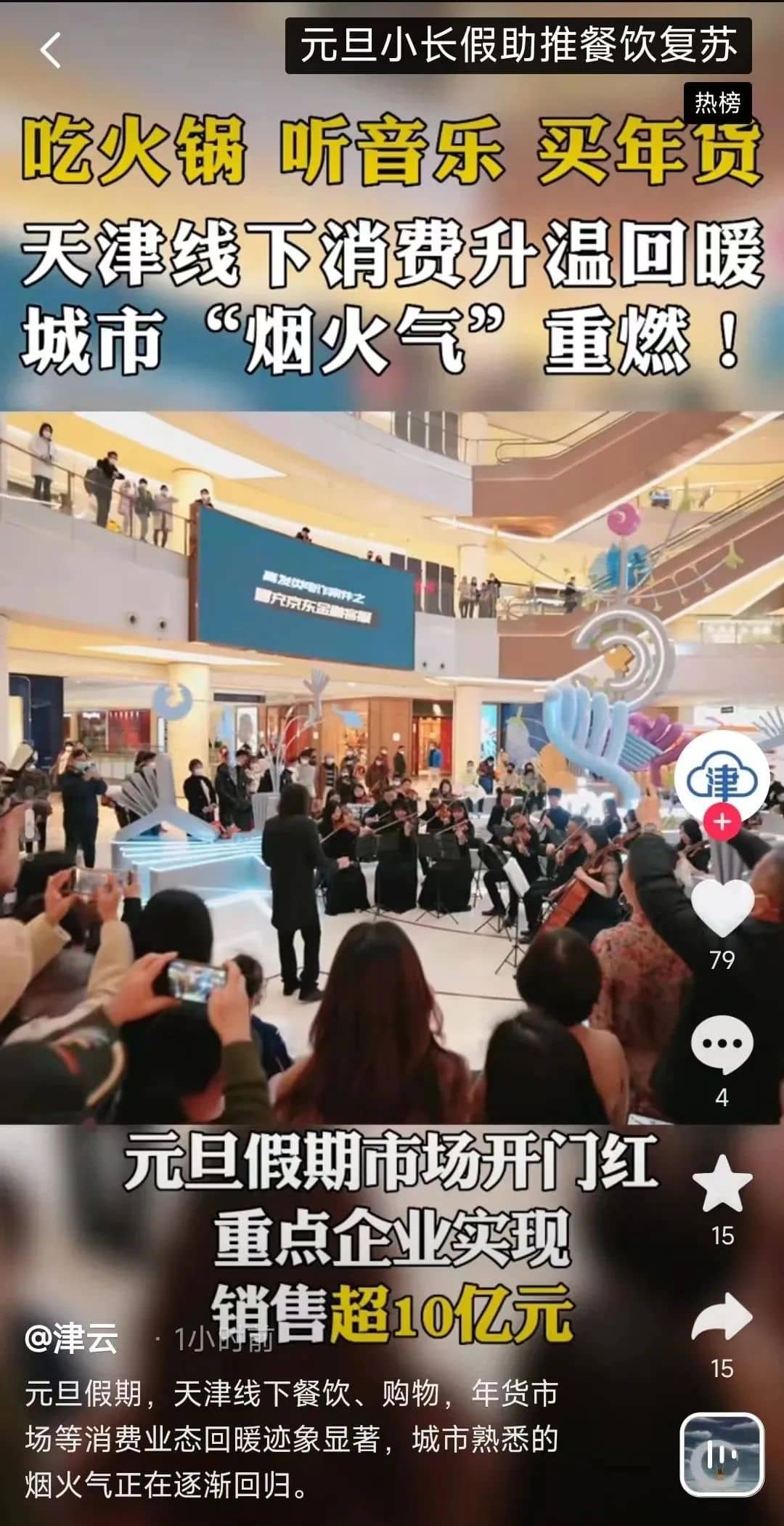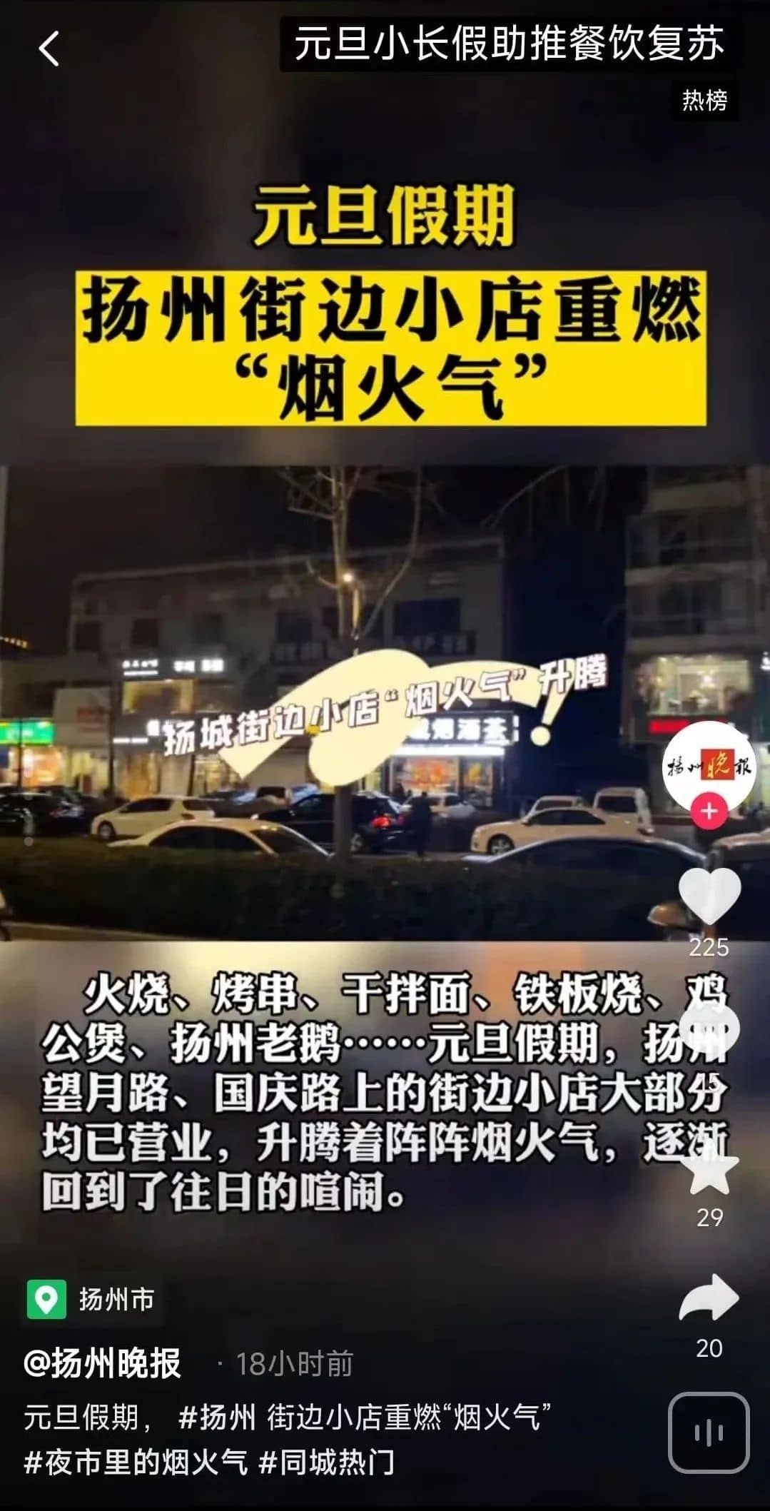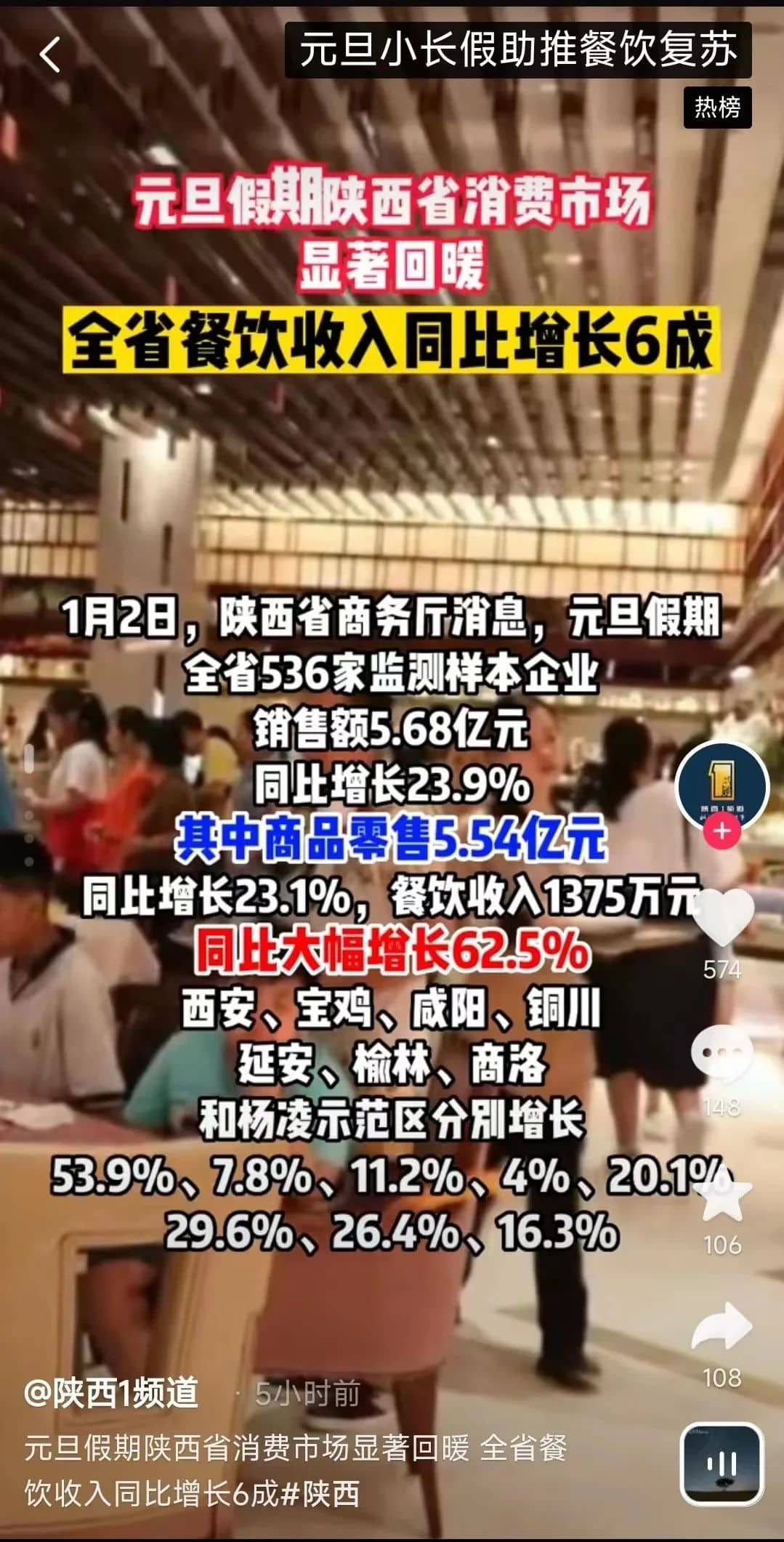 近日,“元旦小长假助推餐饮复苏”登上了热榜。陕西全省餐饮收入同比增长6成,天津元旦假期重点企业实现销售超10亿元,杨州望月路、国庆路上的店铺回到了往日的喧闹……