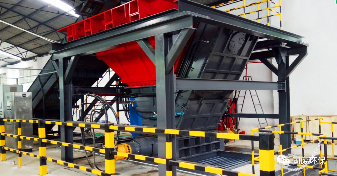 此方案主要针对废布料、废塑料、皮革边角料等高热值工业固废。整套处理系统采用双轴+单轴的双级破碎理念,既能够实现对复杂原料的破碎,又能保证出料95%的粒径达标率。
